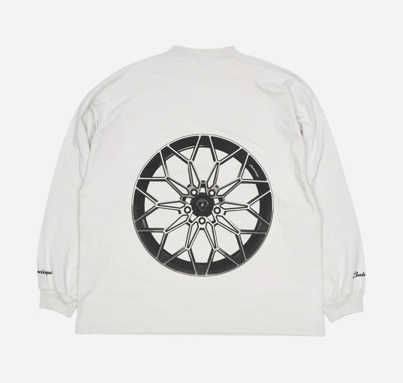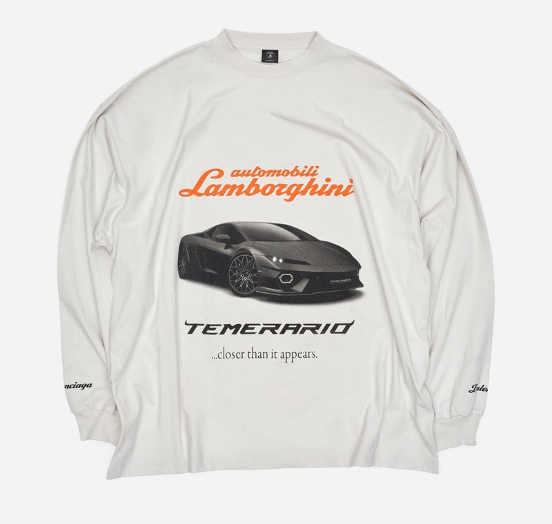 The Balenciaga Automobili Lamborghini Long Sleeve blends luxury fashion with high-performance car culture. Featuring a bold "Temerario" print on the front with a striking Lamborghini graphic, this long sleeve tee is a must-have for motorsport and streetwear enthusiasts. The back showcases a large wheel design, adding to its dynamic appeal. Crafted from premium cotton, it delivers both comfort and statement-making style.