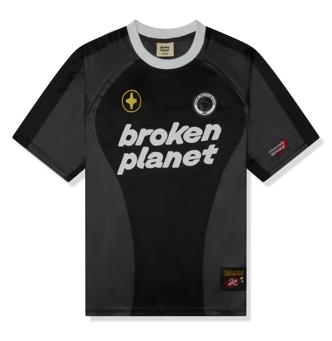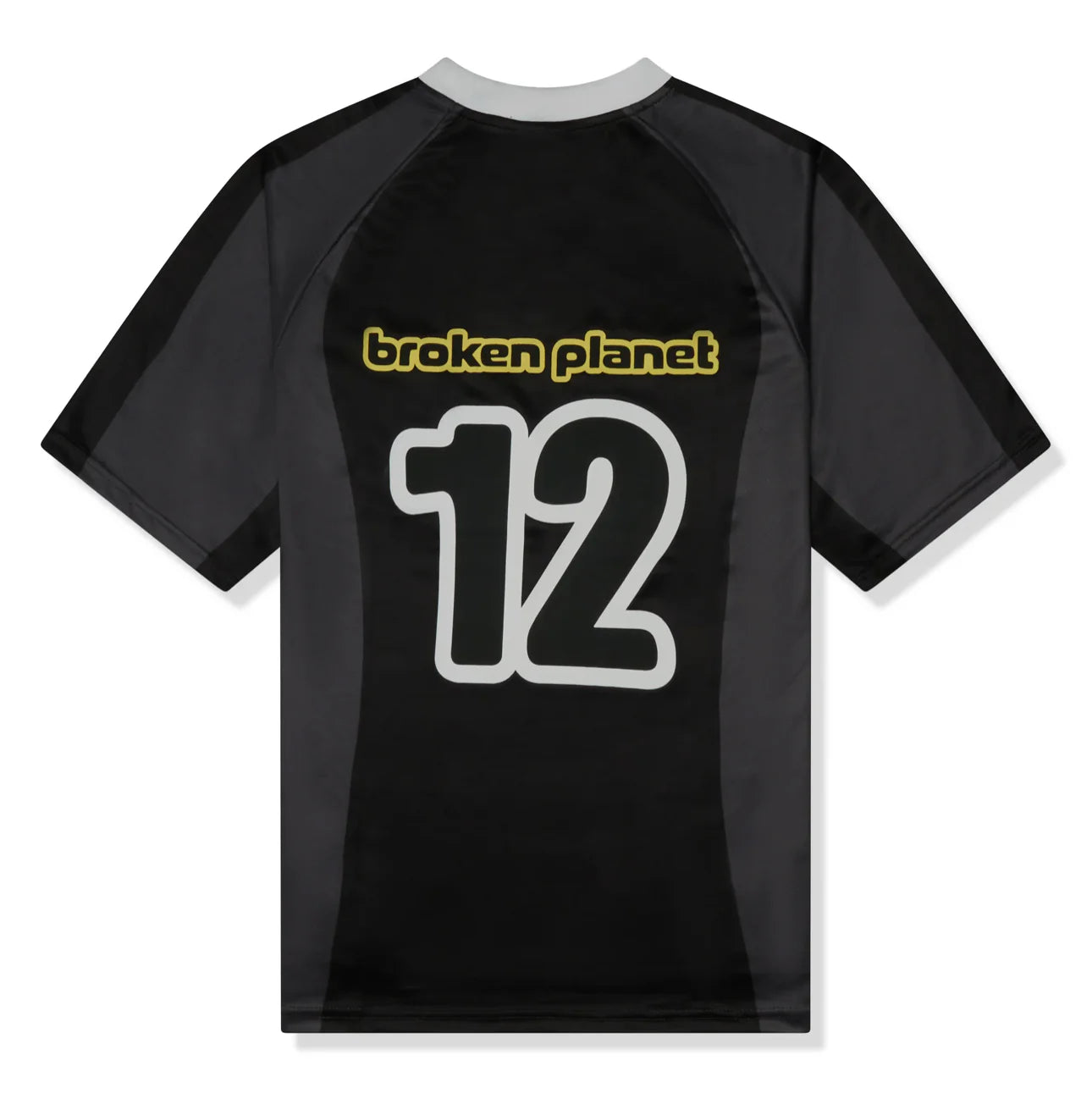 The Broken Planet Football Jersey in Black is a must-have for streetwear lovers. Featuring a sleek black base with bold white and grey accents, this jersey combines sport-inspired style with the brand’s signature aesthetic. The number 12 is displayed on the front, while the Broken Planet logo is placed on the left shoulder and back neckline. Crafted from high-quality breathable fabric, this jersey is designed for both comfort and statement looks.
