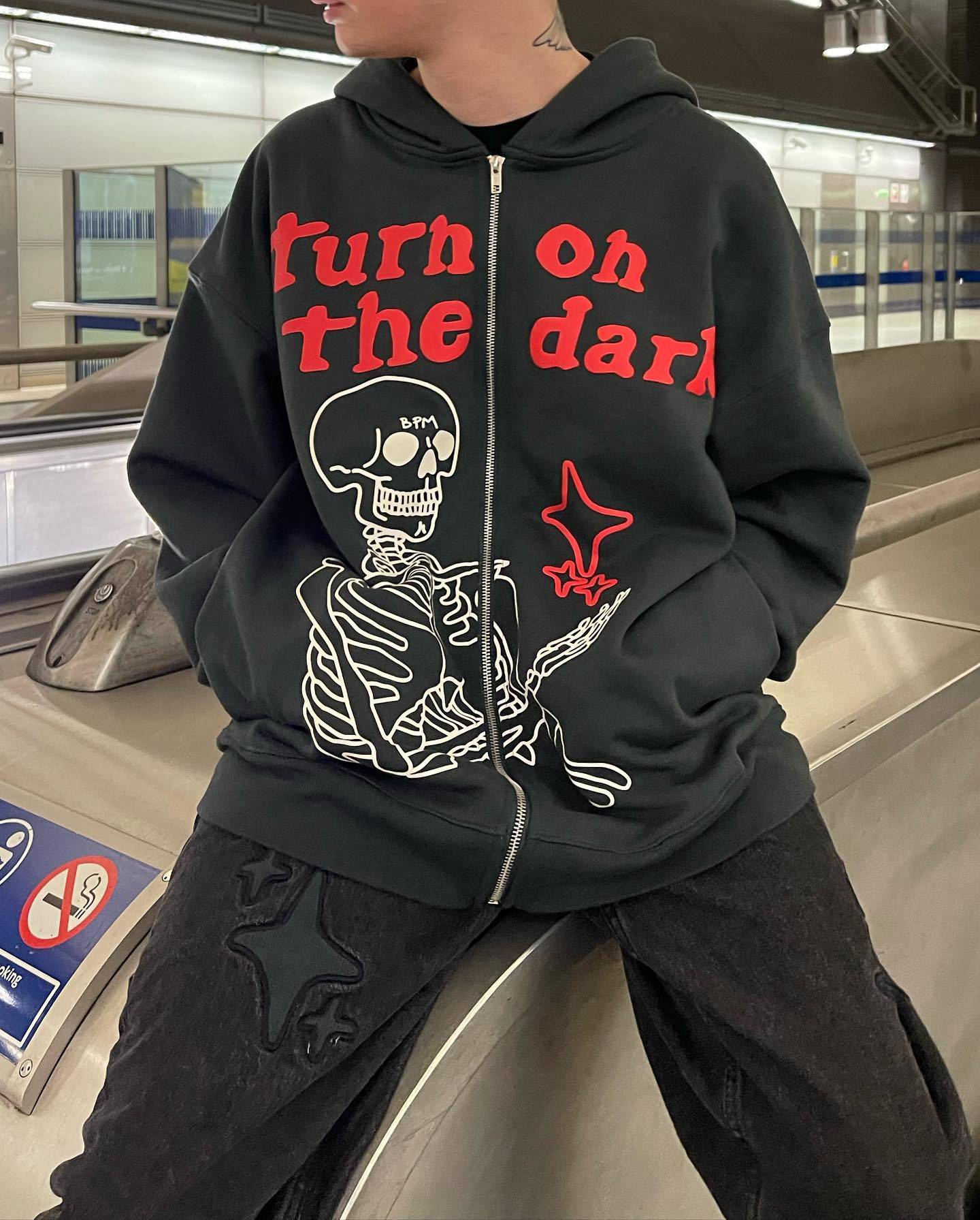 Embrace the darkness with the Broken Planet "Turn On The Dark" Zip-Up Hoodie. This bold design features a striking graphic, perfect for those who love a dark, edgy vibe. Crafted with premium cotton for a comfortable fit, this zip-up hoodie offers both style and coziness, making it an essential piece for any streetwear enthusiast.