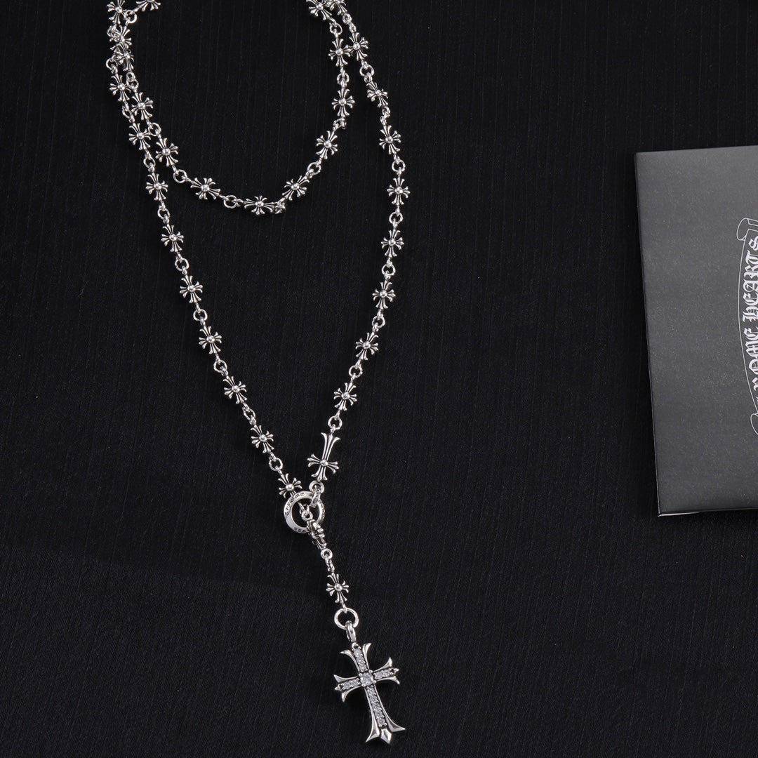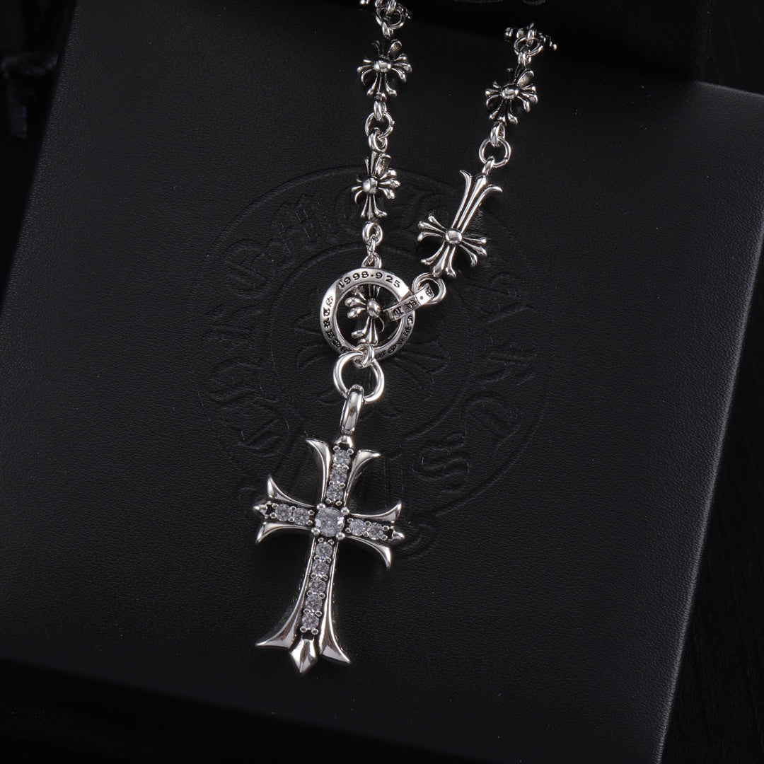 Turn heads with this Chrome Hearts-inspired cross pendant, crafted to bring a statement-making edge to your look. Featuring a beautifully detailed gothic cross encrusted with brilliant cut CZ stones, this piece delivers maximum shine without the premium price tag.