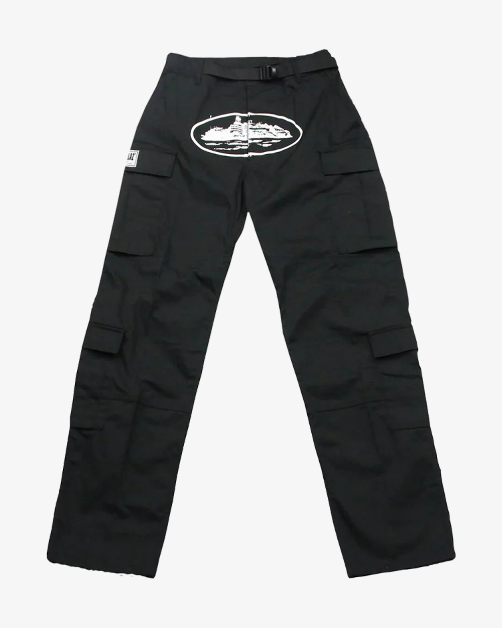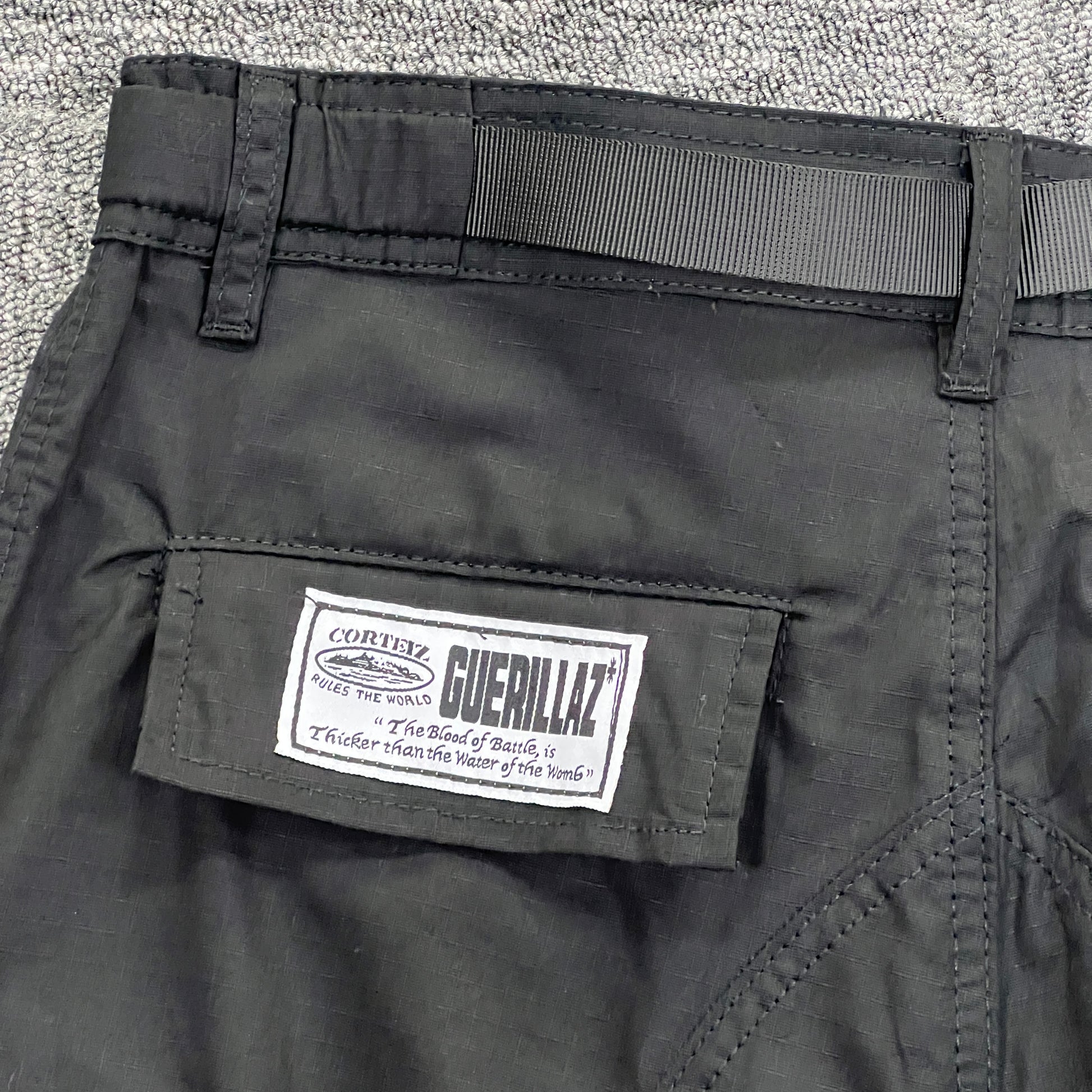 The Corteiz Guerillaz Cargos in Black are built for both durability and style. Featuring a relaxed, straight-leg fit with multiple cargo pockets, these pants deliver both functionality and streetwear appeal. The signature Corteiz 5 Starz branding is printed on the left thigh, while a bold white Guerillaz logo runs along the right pocket flap. Made from high-quality cotton with reinforced stitching, these cargos are made to last.