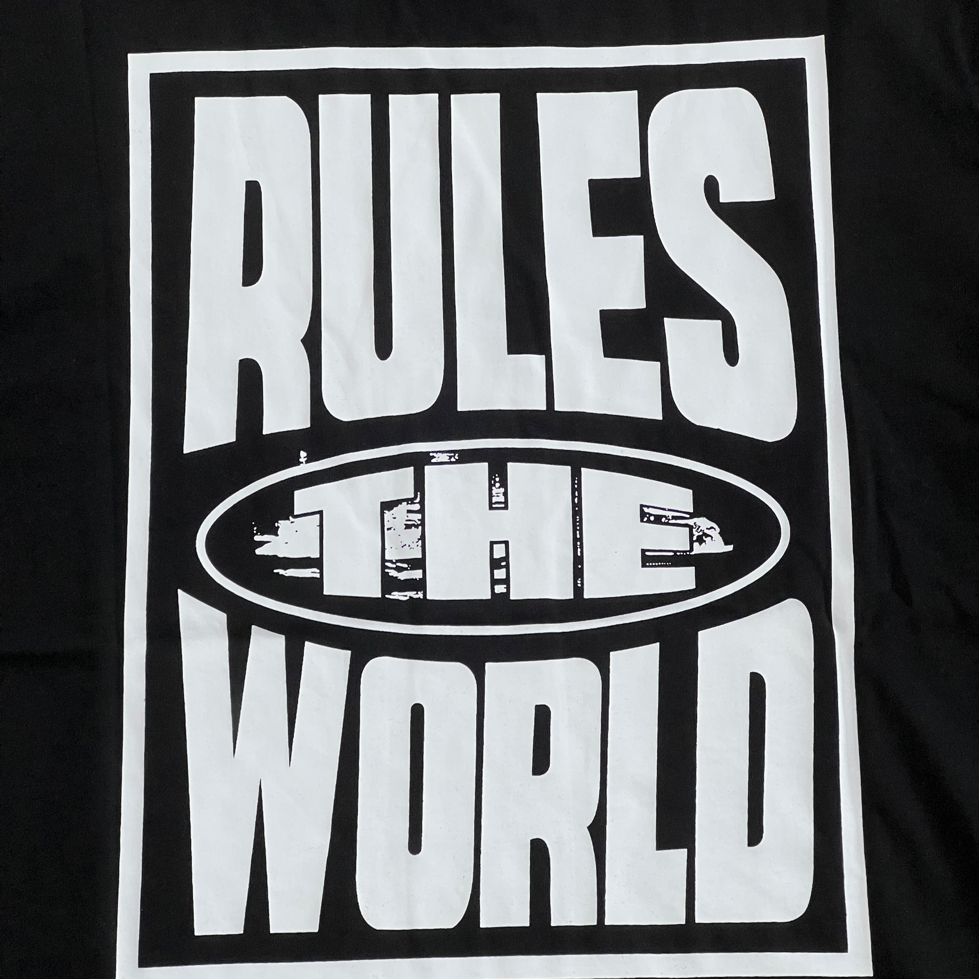 The Corteiz RTW Tee in White features the Alcatraz logo on the front with the phrase "RULES THE WORLD" in small text on the left chest. The back showcases the same design but much larger, making a bold statement.