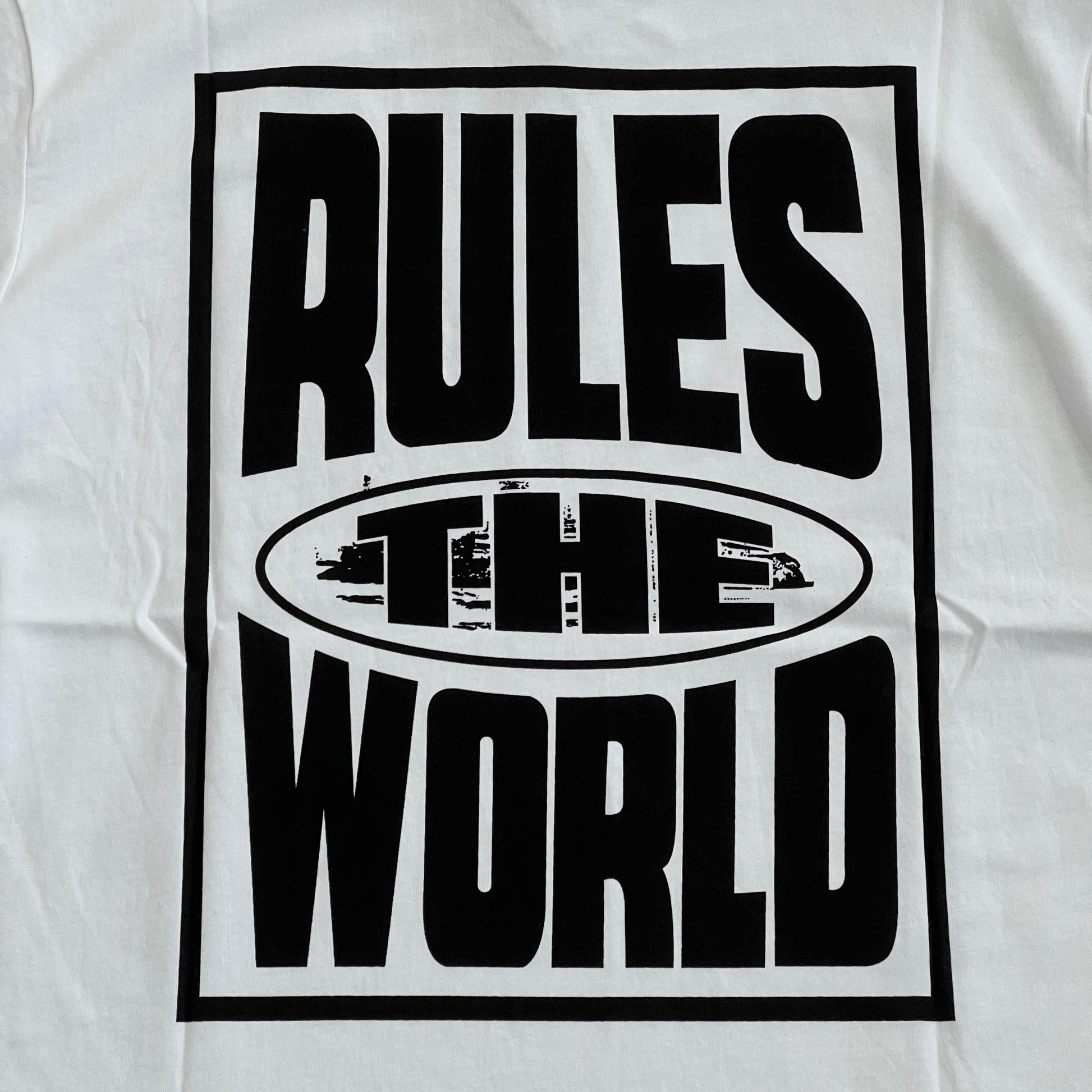 The Corteiz RTW Tee in White features the Alcatraz logo on the front with the phrase "RULES THE WORLD" in small text on the left chest. The back showcases the same design but much larger, making a bold statement.