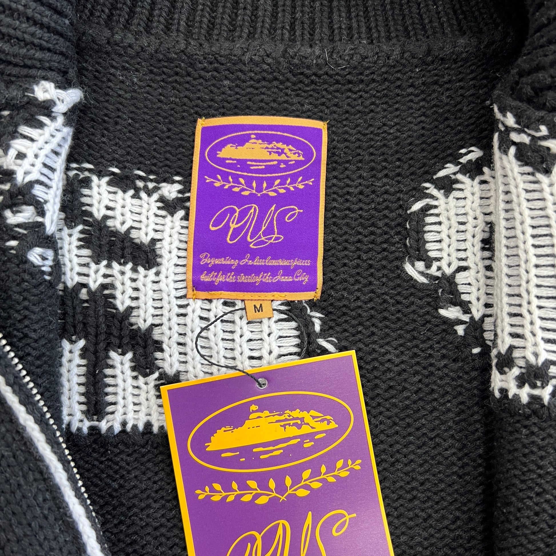 Corteiz VVS Heavy Jacquard Knit Zip Black
