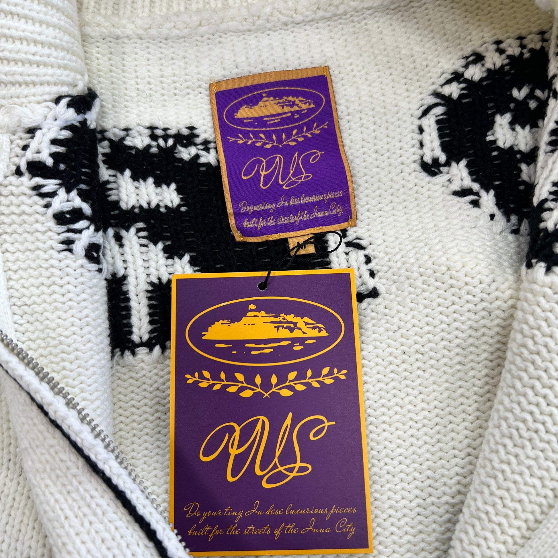 Corteiz VVS Heavy Jacquard Knit Zip Natural
