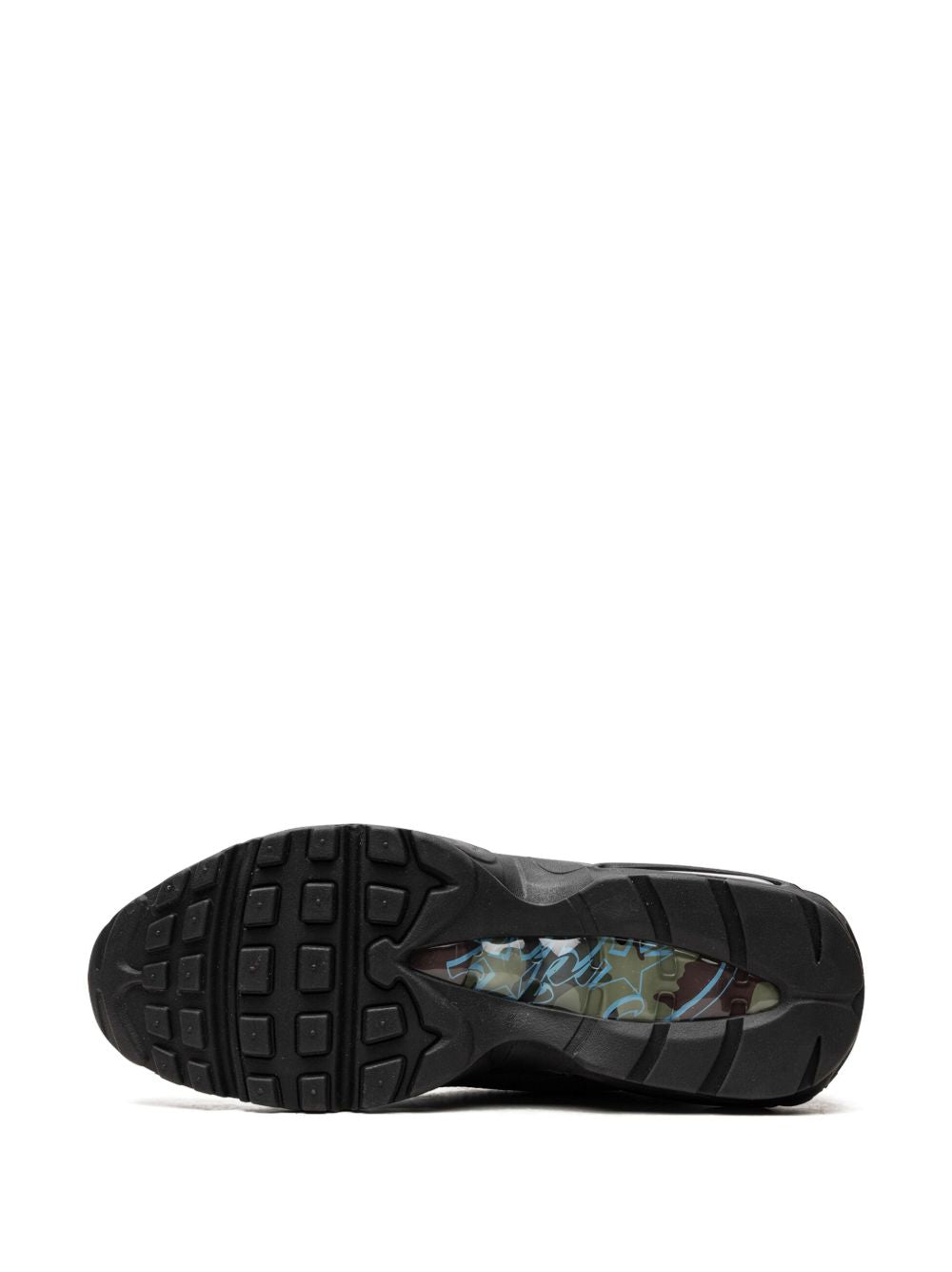 The Corteiz x Nike Air Max 95 "Gridiron" stands out with its utilitarian design and subtle branding. The sneaker features a dark grey "Gridiron" leather and mesh upper, complemented by a black mesh throat and light grey mudguard. Corteiz's signature branding is embroidered in bright blue on the lateral forefoot and heel of the left shoe, while a small blue Swoosh is positioned on the lateral heel of the right shoe. The interior boasts a woodland camo print, adding a military-inspired touch. The design is completed with a black polyurethane midsole housing blue-tinged Max Air units in the forefoot and heel, ensuring both style and comfort.