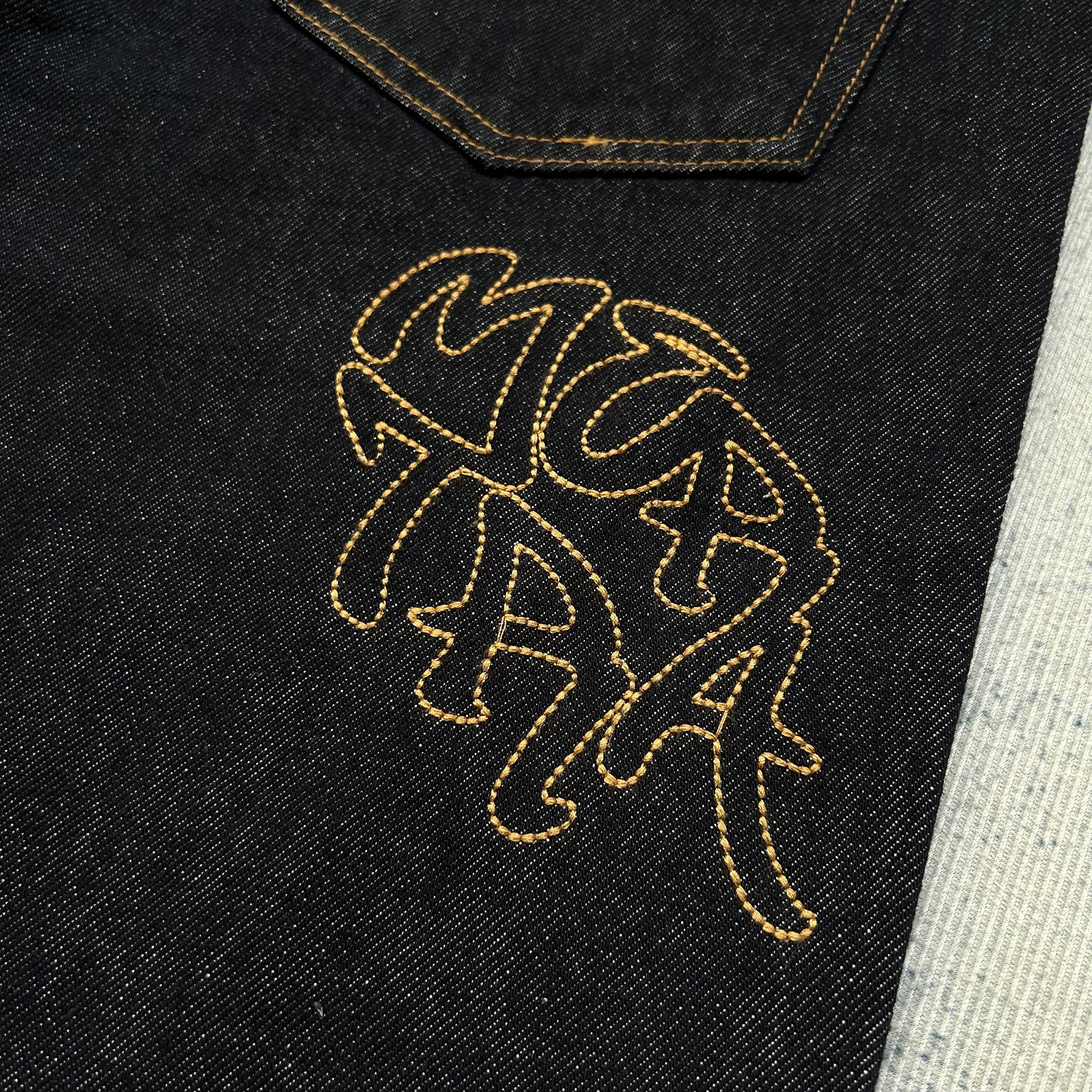 Baggy done right. The Bigstep Denim from Mertra locks in that oversized, street-heavy silhouette with bold contrast stitching and a relaxed drop. The embroidered Mertra logo on the leg keeps it branded but subtle. Built from heavyweight denim that stacks perfectly on sneakers or boots.