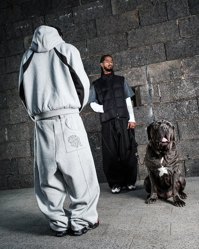 The Mertra Bigstep Tracksuit mixes comfort with sharp design, high neck hoodie with curved navy paneling, matching sweats with contrast pockets and adjustable hems. Embroidered logos on both pieces keep it minimal but hard.