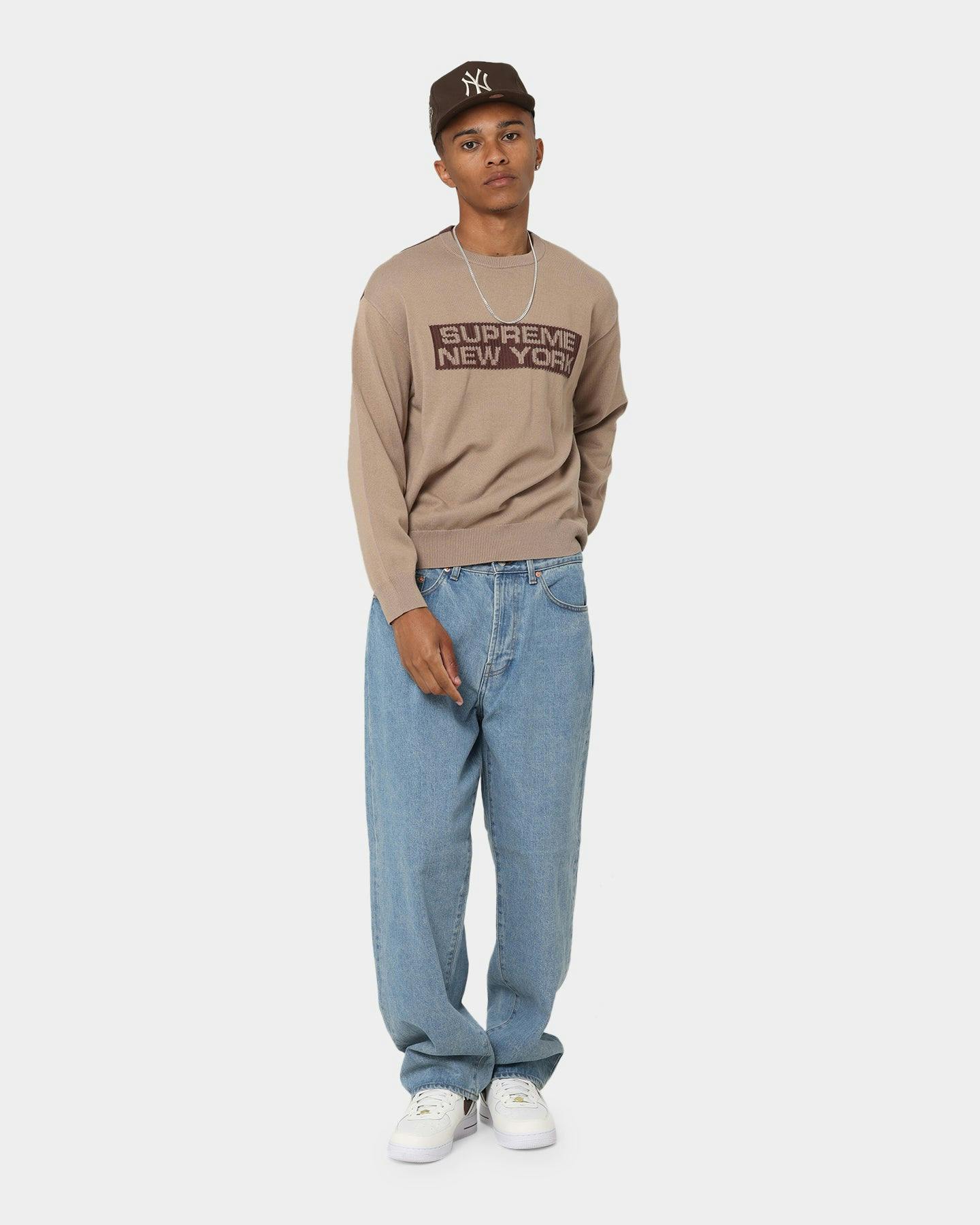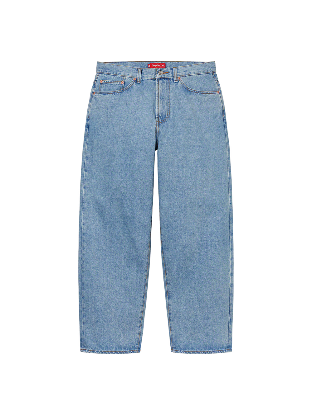 Clean, classic, and unmistakably Supreme. These baggy fit denim jeans feature the iconic Supreme New York logo printed on the back right pocket, giving that lowkey flex from the rear view. Branded details hit all the right spots – from the waist tag to the engraved buttons. Built tough with quality denim and finished with all original tags attached. A staple for any real streetwear rotation.