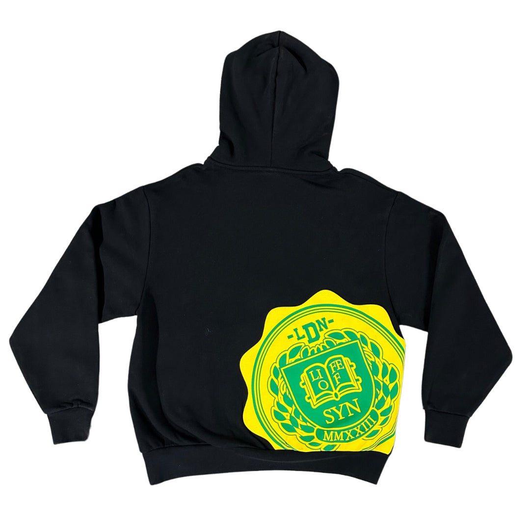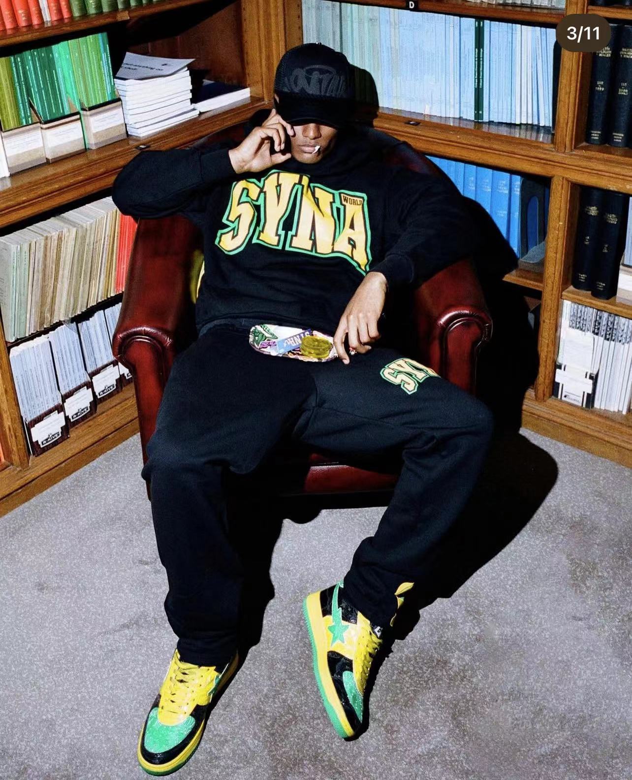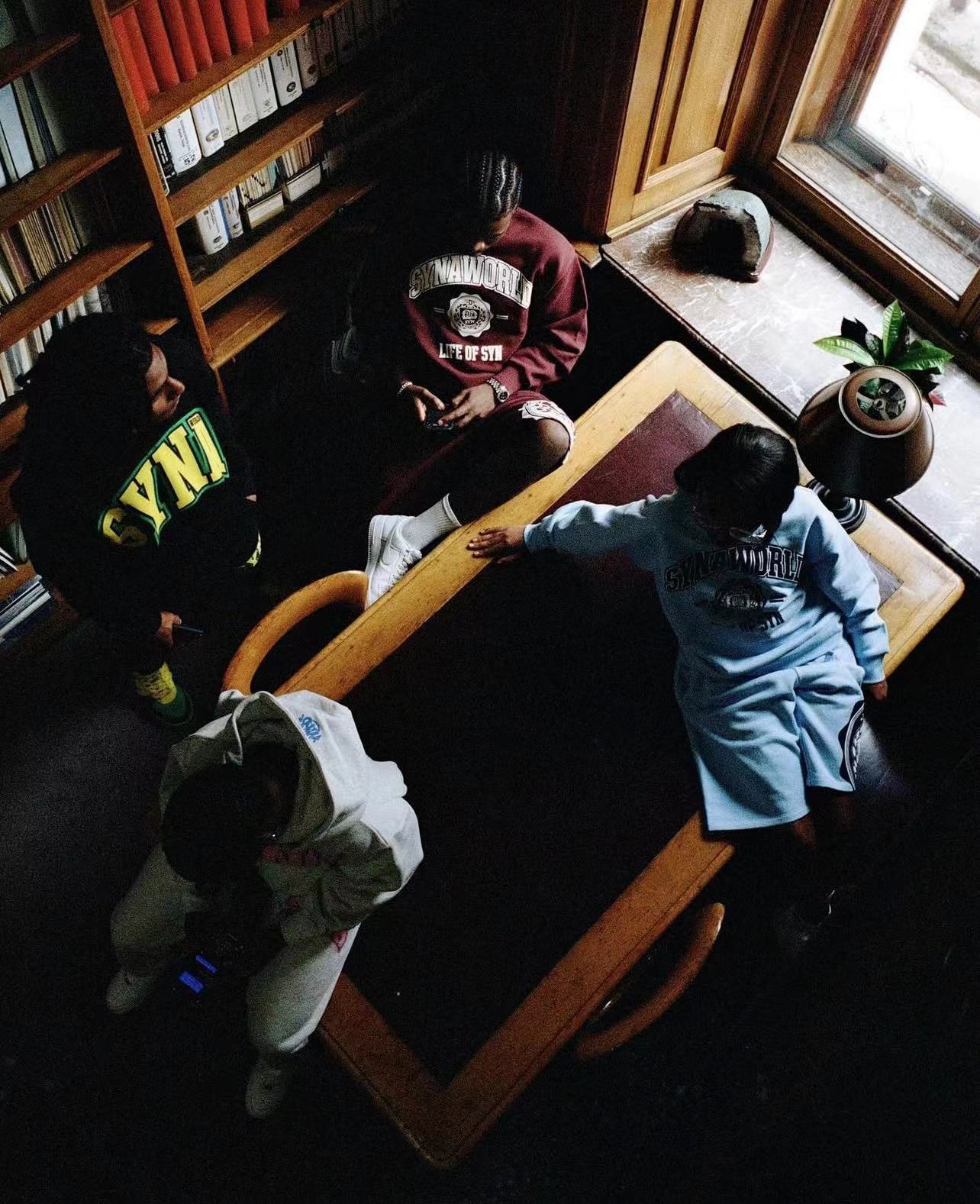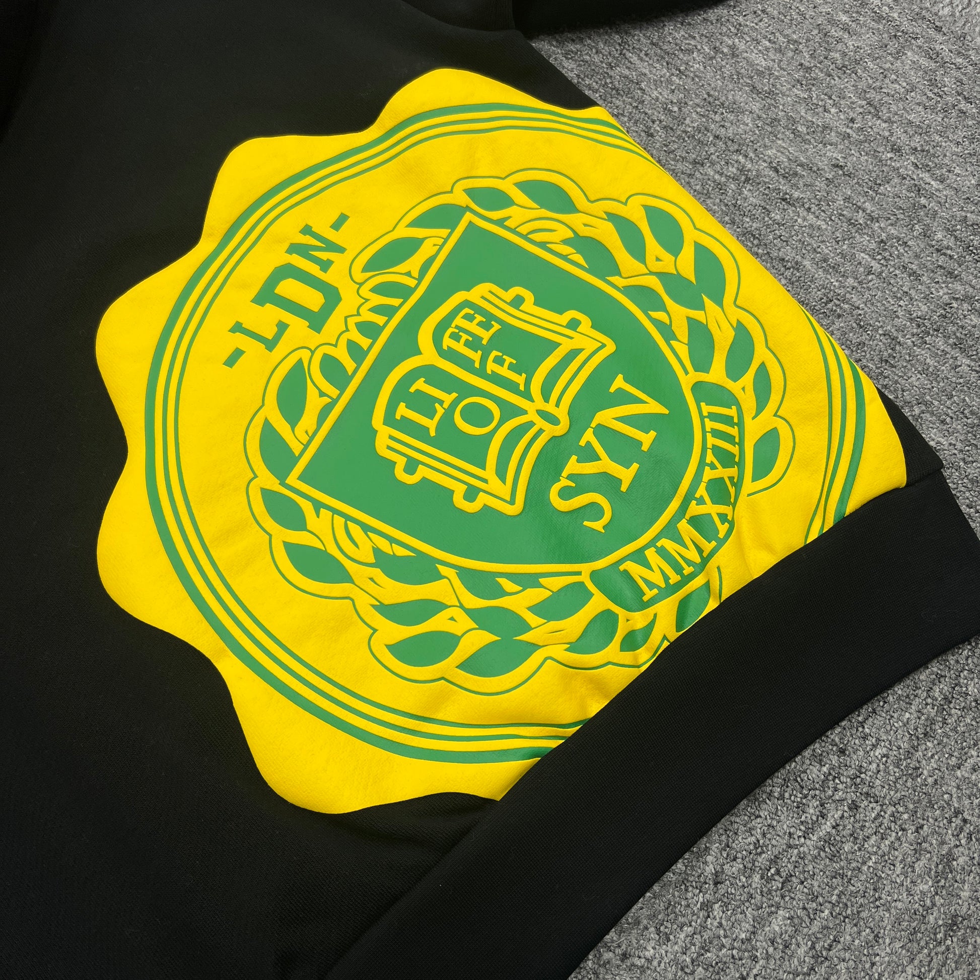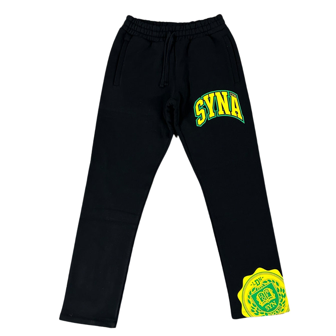 The Syna World College Tracksuit is a statement piece with a bold, collegiate-inspired design. Crafted from heavyweight 440g fabric, the hoodie provides premium warmth and structure, while the joggers maintain a relaxed yet fitted silhouette. The large arched "SYNA" branding on both the hoodie and pants adds a strong streetwear aesthetic, with additional logo detailing on the sleeve and pant leg. Featuring an adjustable hood, kangaroo pocket, elastic waistband, and cuffed hems, this tracksuit blends comfort and flex effortlessly.