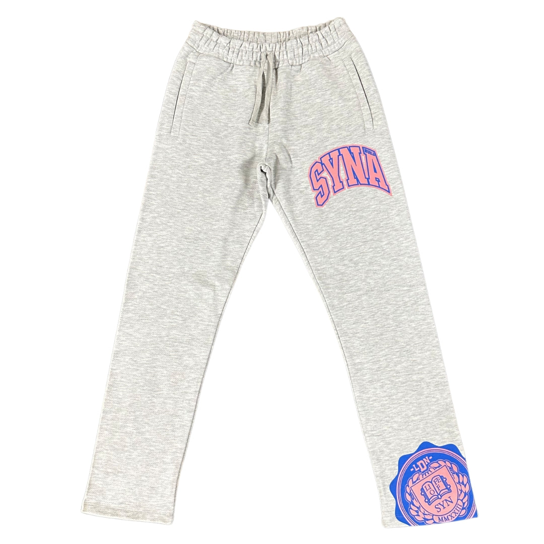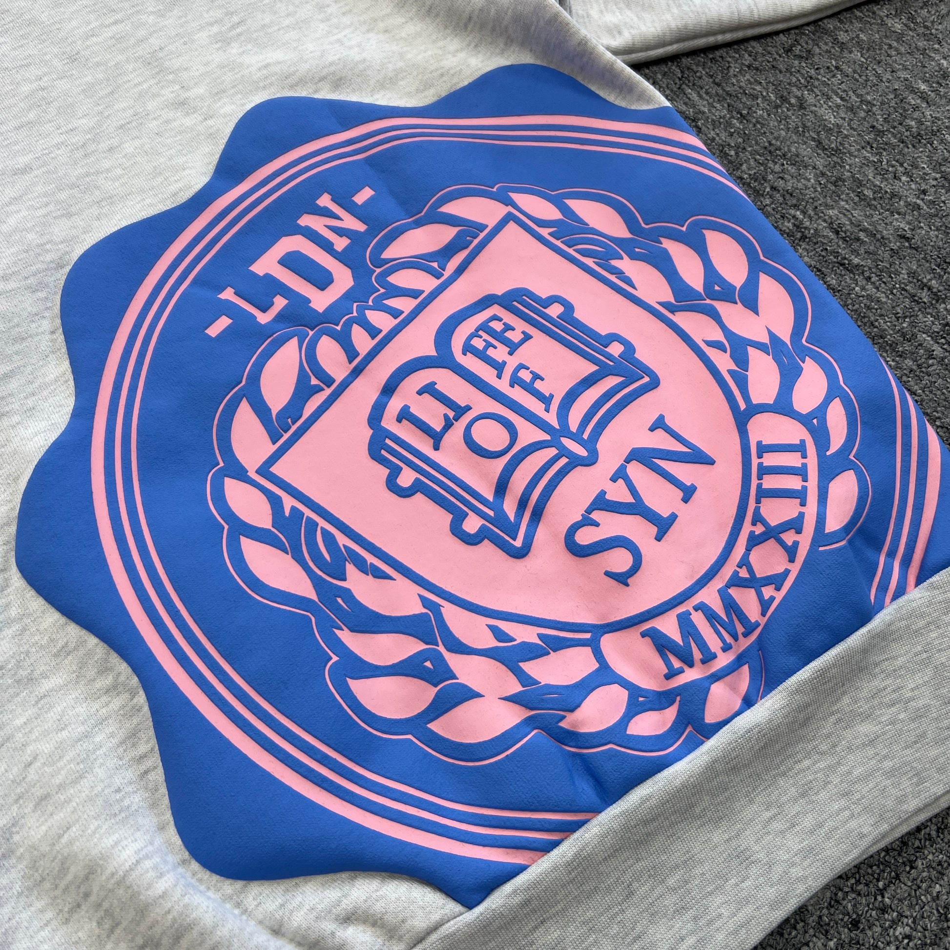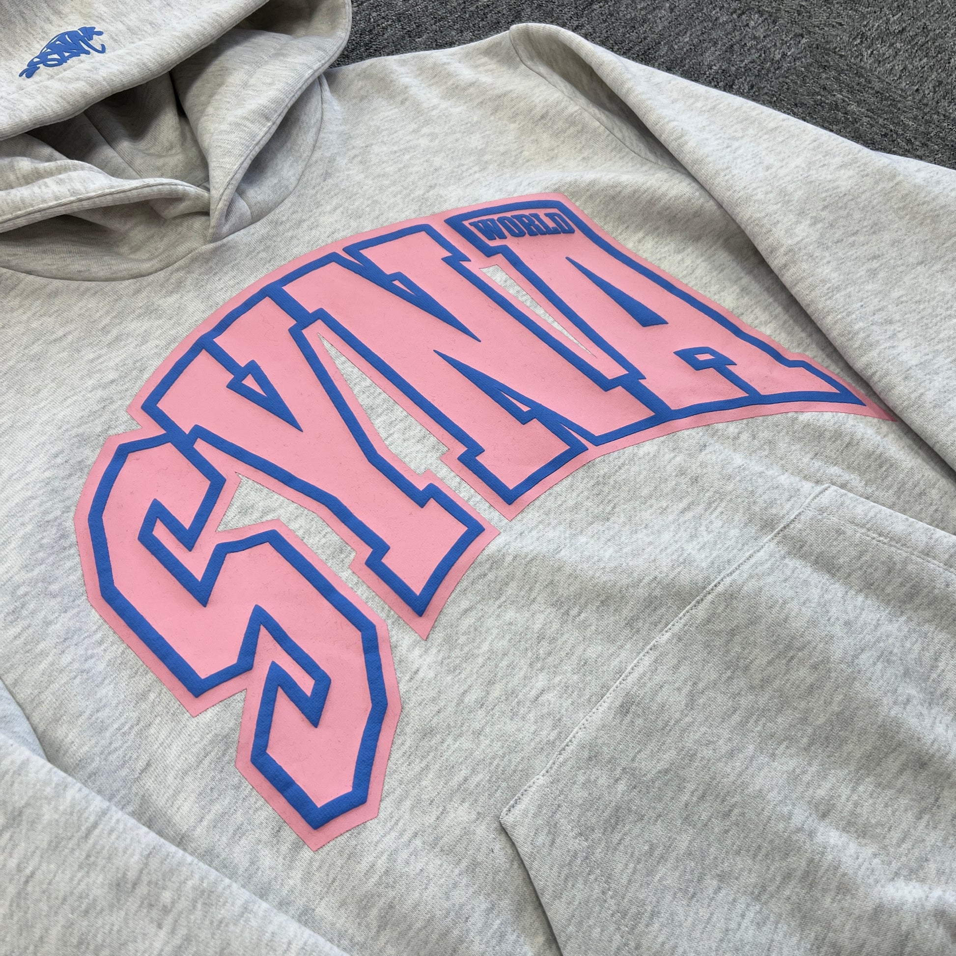The Syna World College Tracksuit is a statement piece with a bold, collegiate-inspired design. Crafted from heavyweight 440g fabric, the hoodie provides premium warmth and structure, while the joggers maintain a relaxed yet fitted silhouette. The large arched "SYNA" branding on both the hoodie and pants adds a strong streetwear aesthetic, with additional logo detailing on the sleeve and pant leg. Featuring an adjustable hood, kangaroo pocket, elastic waistband, and cuffed hems, this tracksuit blends comfort and flex effortlessly.