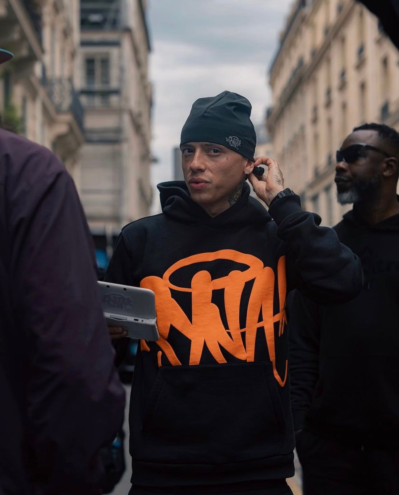 A staple streetwear set built for everyday wear. The heavyweight black hoodie features bold orange "SYNA" branding across the front, partially hidden by the kangaroo pocket for a subtle yet standout look. The matching shorts carry the same logo, vertically placed down the left leg, tying the whole fit together. Crafted with thick, high-quality fabric, this set is designed for comfort and durability.