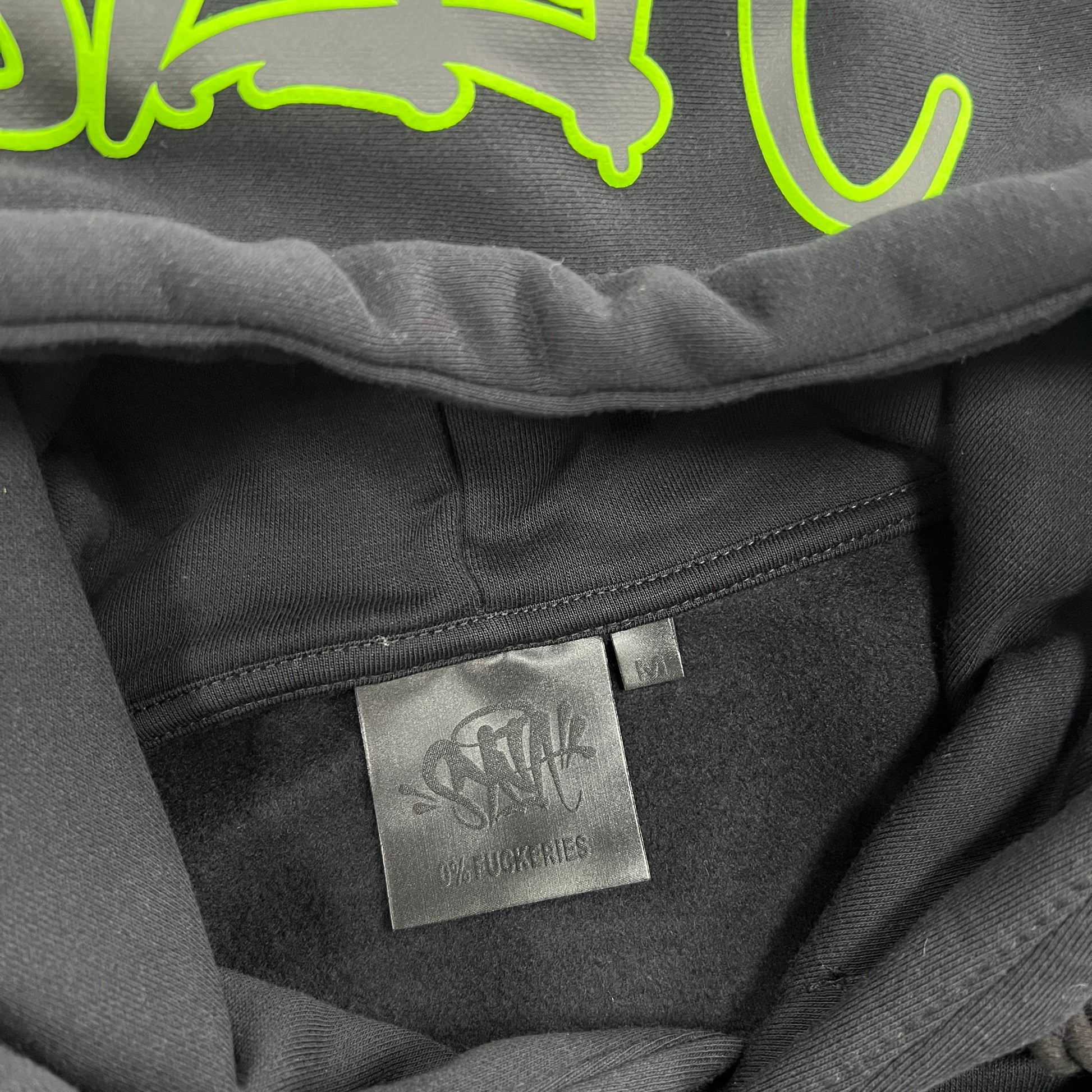 The Syna World Tracksuit is a premium streetwear essential, combining comfort with a bold aesthetic. Crafted from heavyweight cotton blend fabric, this set delivers a relaxed yet structured fit. The hoodie features a large Syna World logo across the chest, while the joggers include matching branding along the thigh. Ribbed cuffs and an adjustable waistband enhance the fit, ensuring all-day wearability. Each set may include random Syna World stickers, adding an exclusive touch.