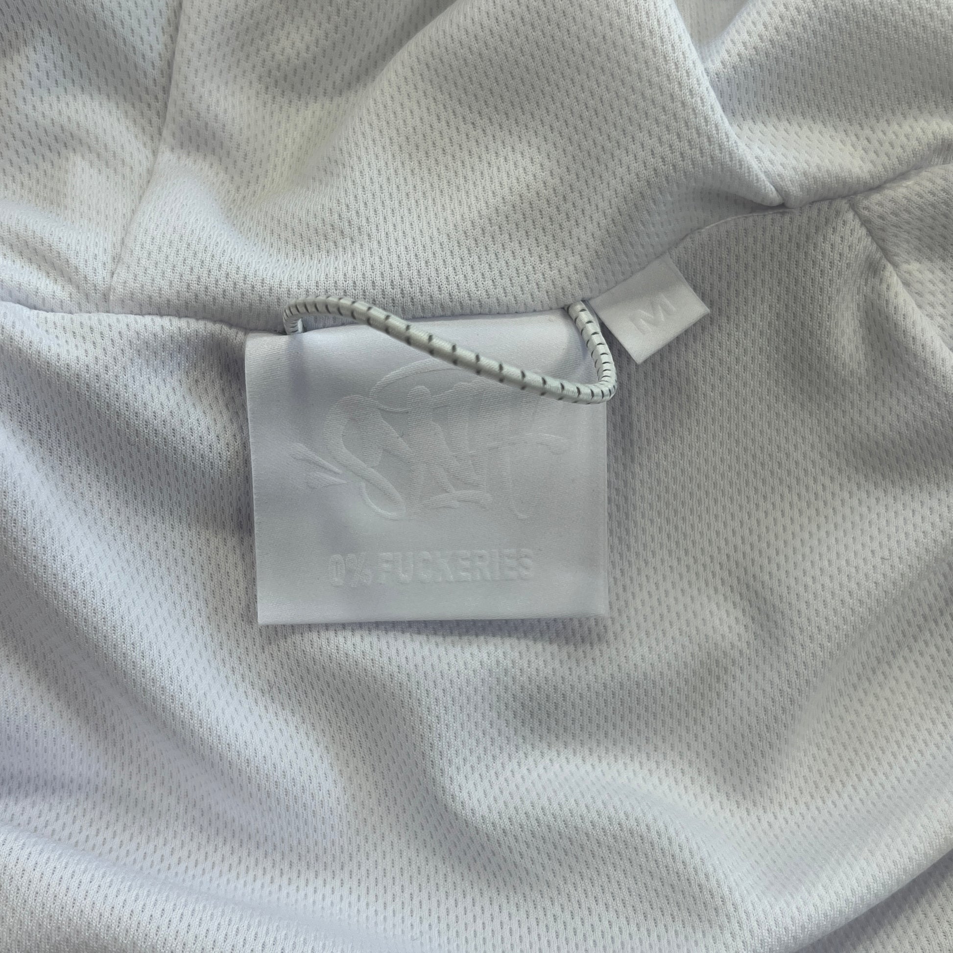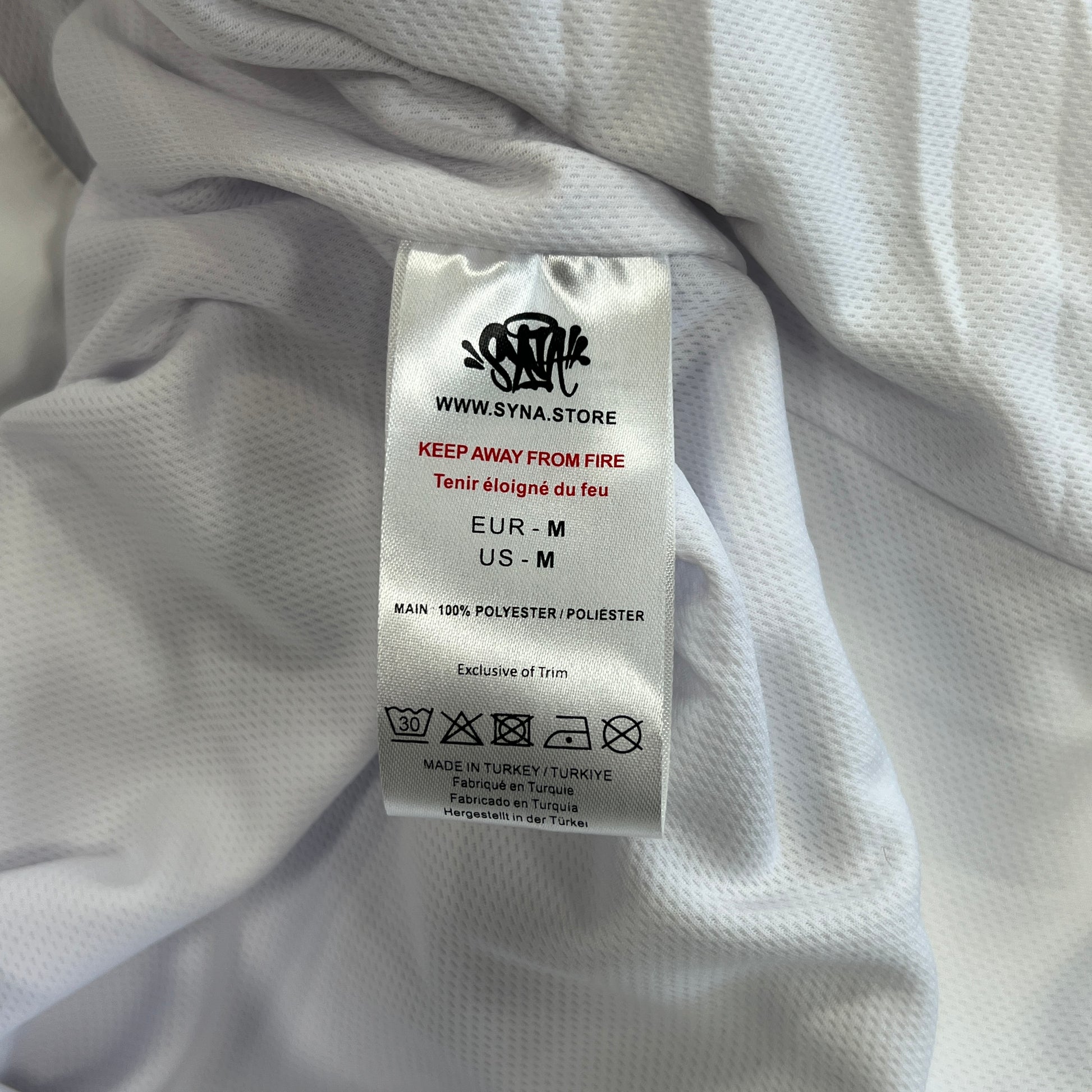 Branding: Embroidered Syna World logo on the chest and SYNA WORLD stitched across the upper back in blue.