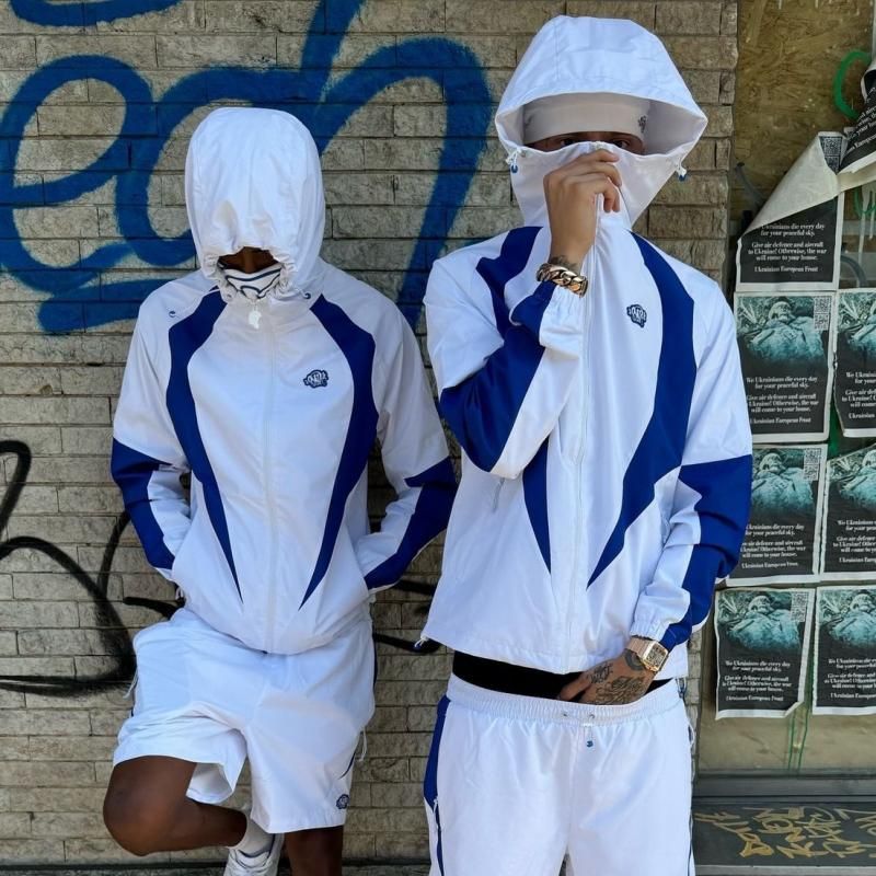 The Syna World Vortex Woven Jacket in White/Blue brings a clean yet bold look, mixing sporty aesthetics with everyday streetwear appeal. Made from lightweight, water-resistant fabric, it is perfect for layering or rocking on its own.
