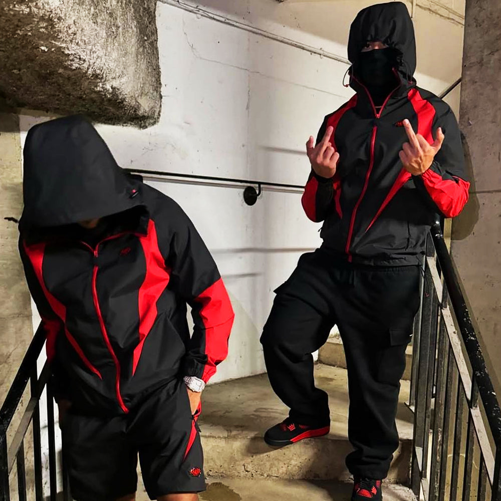 Pair your jacket with the Syna World Vortex Woven Shorts in Black/Red, designed for movement, comfort, and a bold aesthetic.