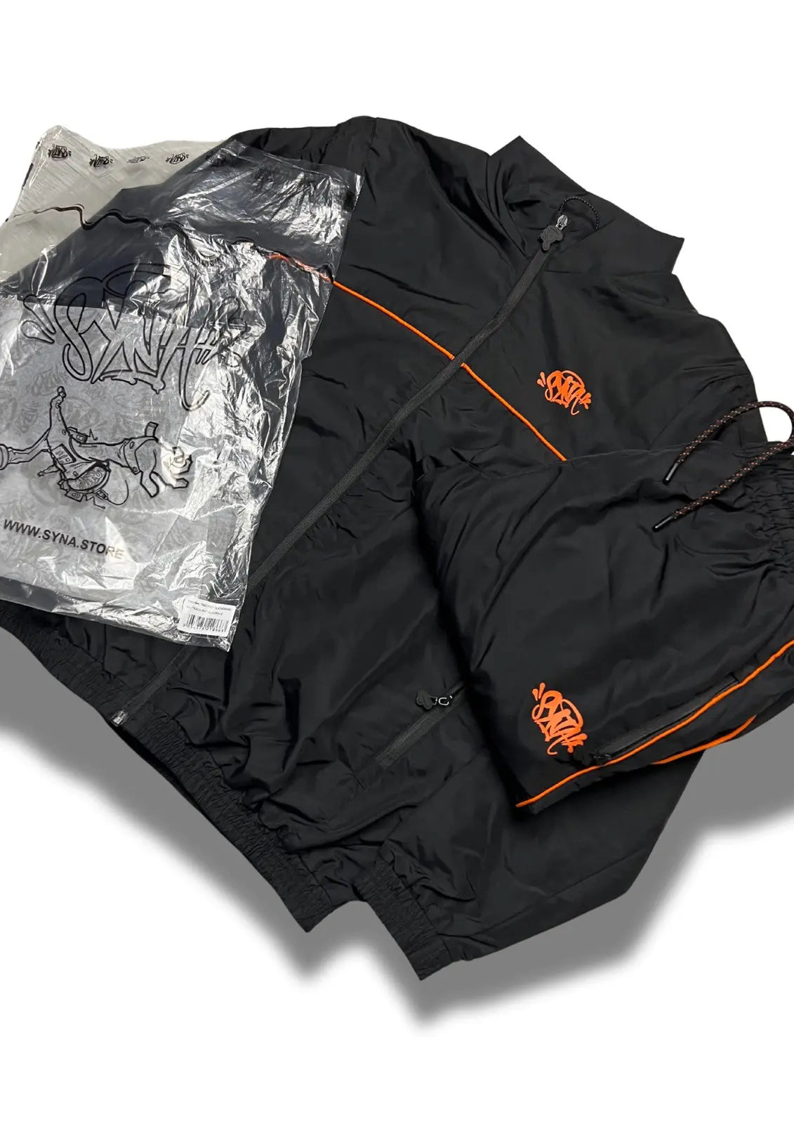 This Syna World Shell Tracksuit offers a premium take on the classic design, focusing on both style and quality. While staying true to the original design, we’ve upgraded the fabric to a higher quality material for enhanced comfort and durability. This tracksuit improves on the standard retail version by offering a more luxurious feel, while maintaining key details like the double-layer pants construction and the iconic design. The set includes a zip-up jacket with orange piping and matching track pants with embroidered branding.