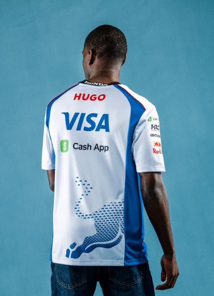 Sponsor Branding – Visa Cash App, Red Bull, and other official sponsors featured across front and sleeves.